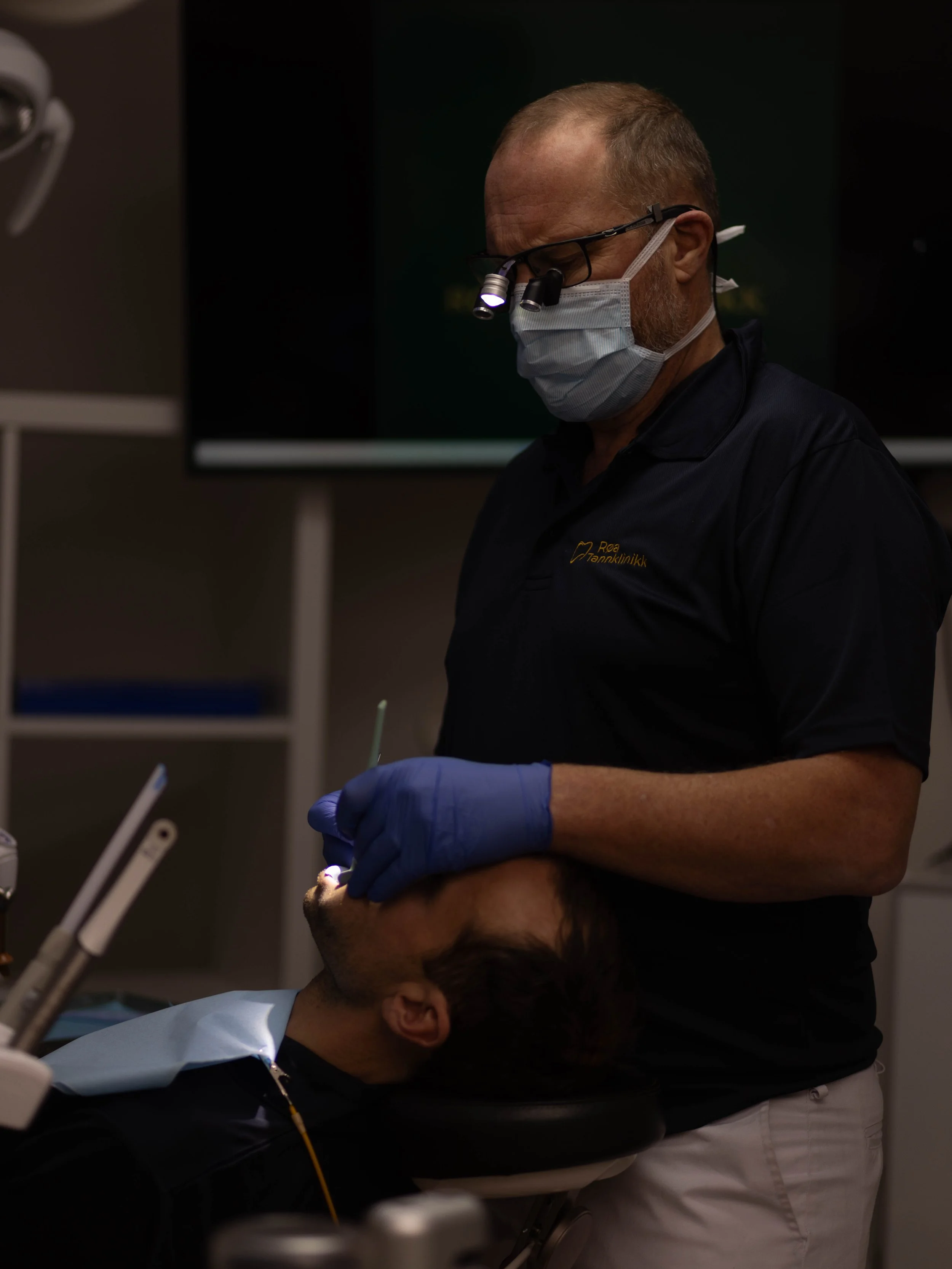 2 røntgenbilder, rens og puss med AirFlow/polering, evt behandlingsplan)